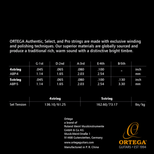 ORTEGA Authentic, Select, and Pro strings are made with exclusive winding and polishing techniques. Our superior materials are globally sourced and produce a traditional rich, warm sound with a distinctive bright timbre. String sets for nylon-string guitar, acoustic bass, mandolin, banjo, ukulele, and guitarlele are included in the comprehensive collection. The anti-rust coating on the Pro and Select sets prevents tarnishing and preserves the clear tone of new strings.