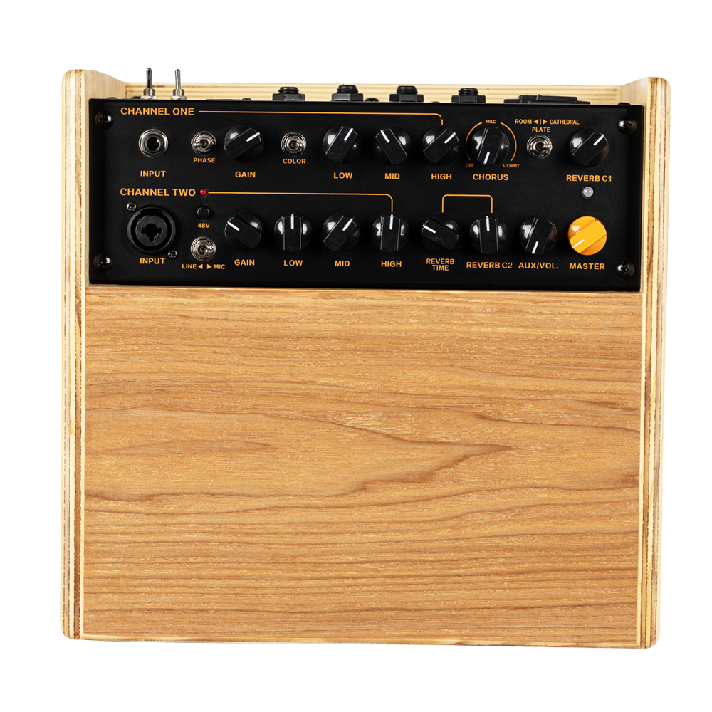 Following the success of the first-ever acoustic amplifier stack, the C One provides acoustic musicians multiple functionalities in a convenient package. The C One is ideal for both performing and practice, featuring 100 watts of power, a built-in DSP effects unit, and two separate channels. Thanks to the box flange, it can even be utilized as a compact PA for your next gig. The amplifier combo comes with two wood options: a light Ash or a dark and elegant Walnut housing.