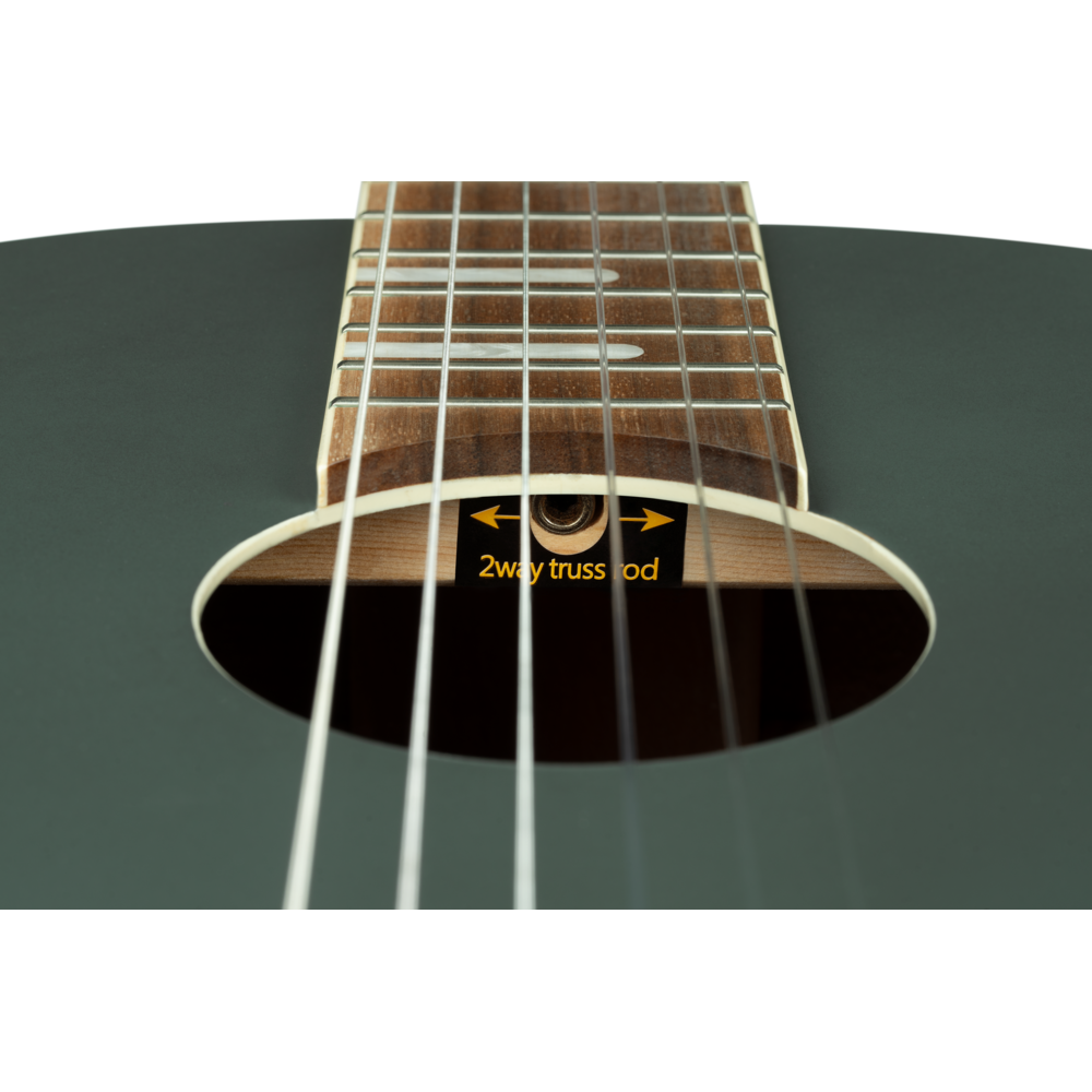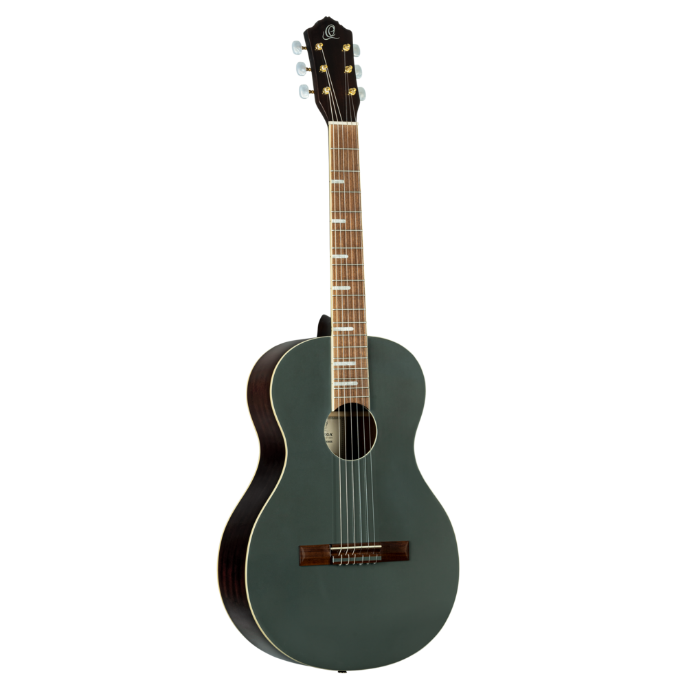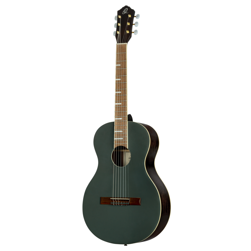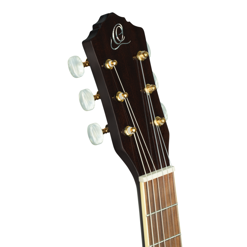 The Ortega Guitars Ranger Series is truly captivating, thanks to its striking glossy top. The colorful tops, available in black, ocean blue, stained red, and platinum, beautifully complement the dark stained mahogany back and sides. The parlor-sized Ranger Series from Ortega features a short-scale neck adorned with bar inlays. Each guitar is also accompanied by a color matching gig bag for added convenience.