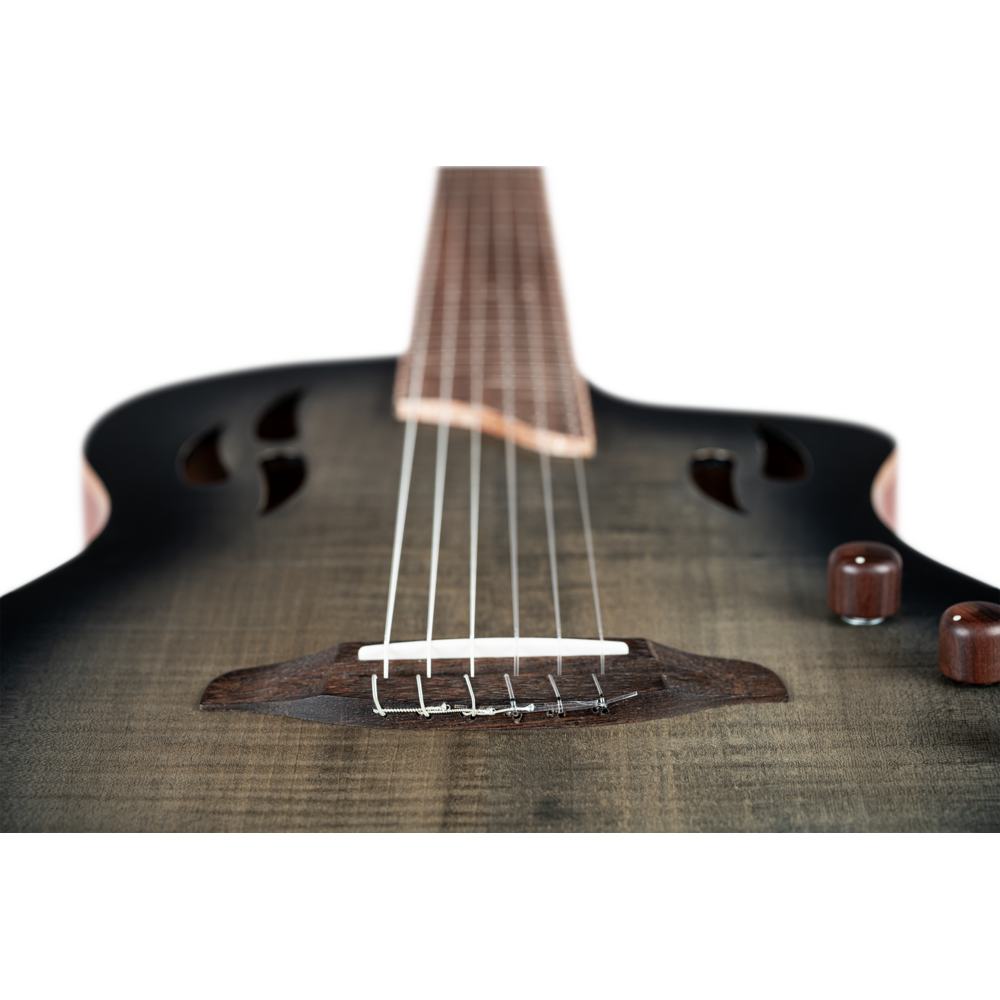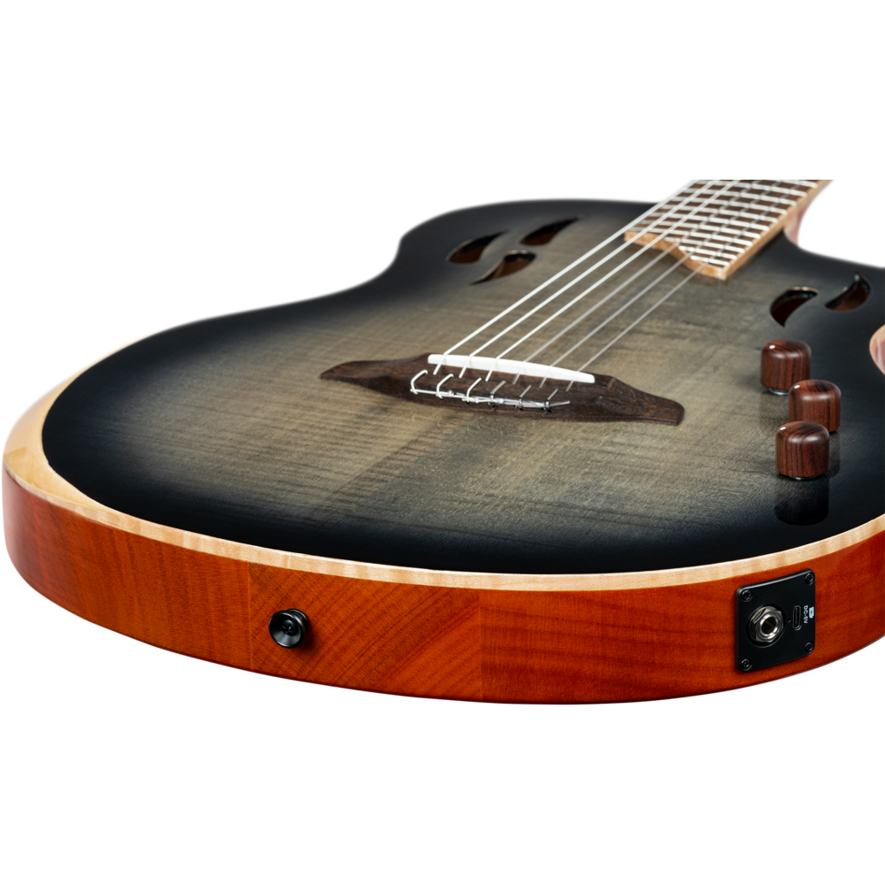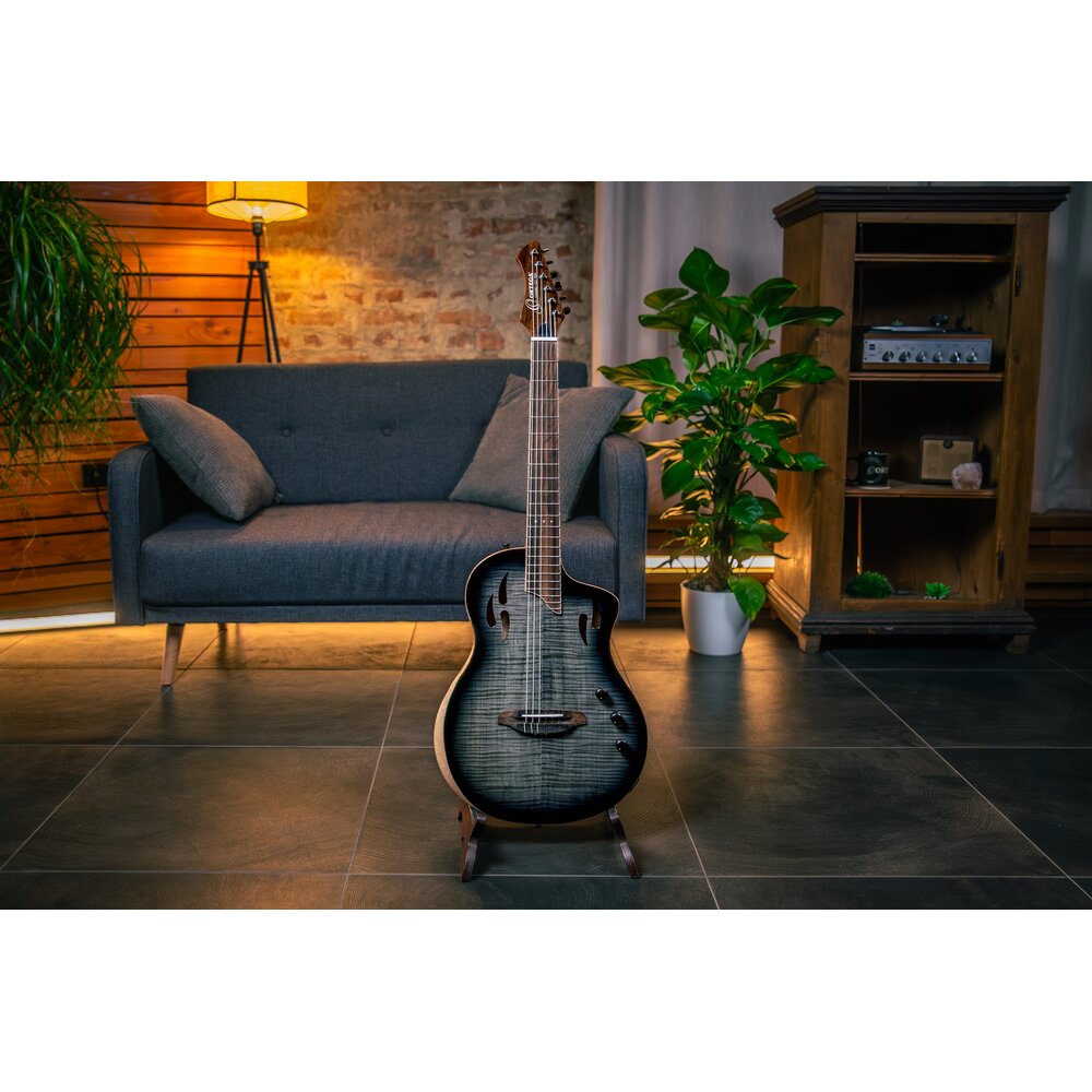 The revolutionary electric nylon string guitar TourPlayer is designed for live performances, delivering the authentic warmth and resonance of a nylon guitar while eliminating feedback issues. Explore a world of sound possibilities you never thought possible on a nylon guitar. The TourPlayer combines the beauty of nylon strings with the power and thrill of an electric guitar, offering innovation at its finest.