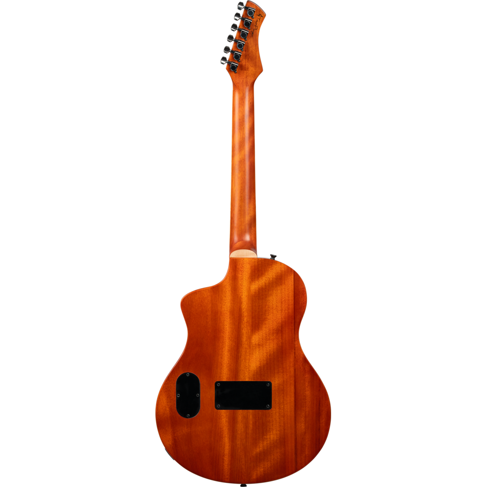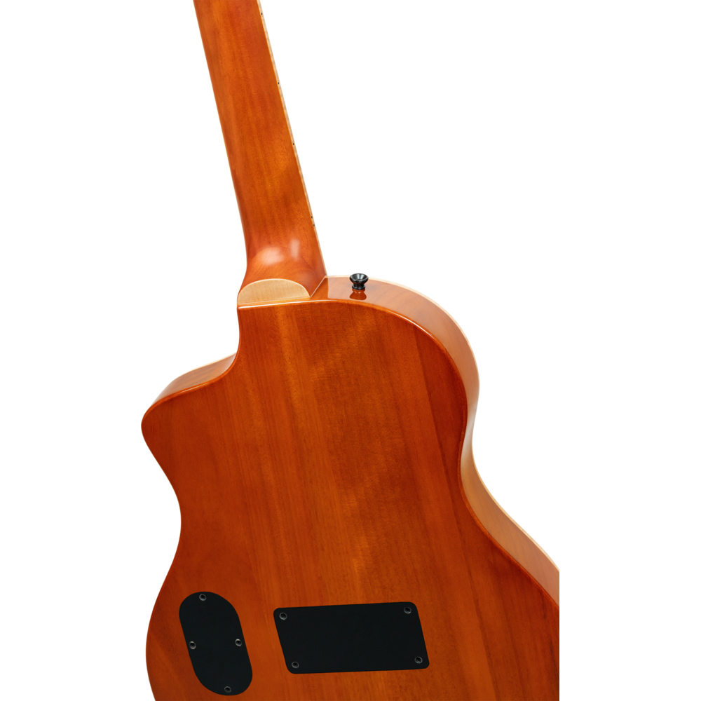 - Solid Spruce top with a Flamed Maple veneer, gloss finish
