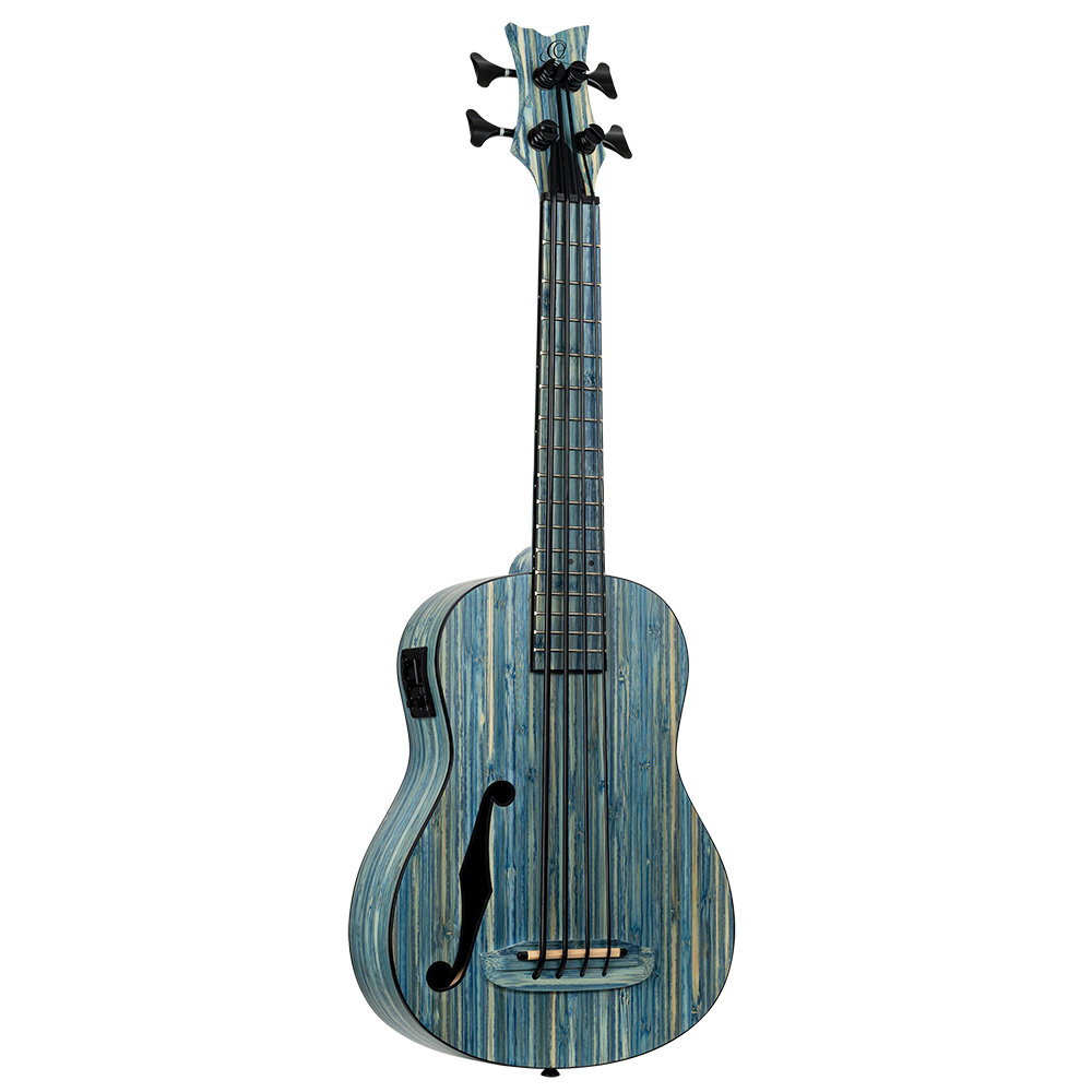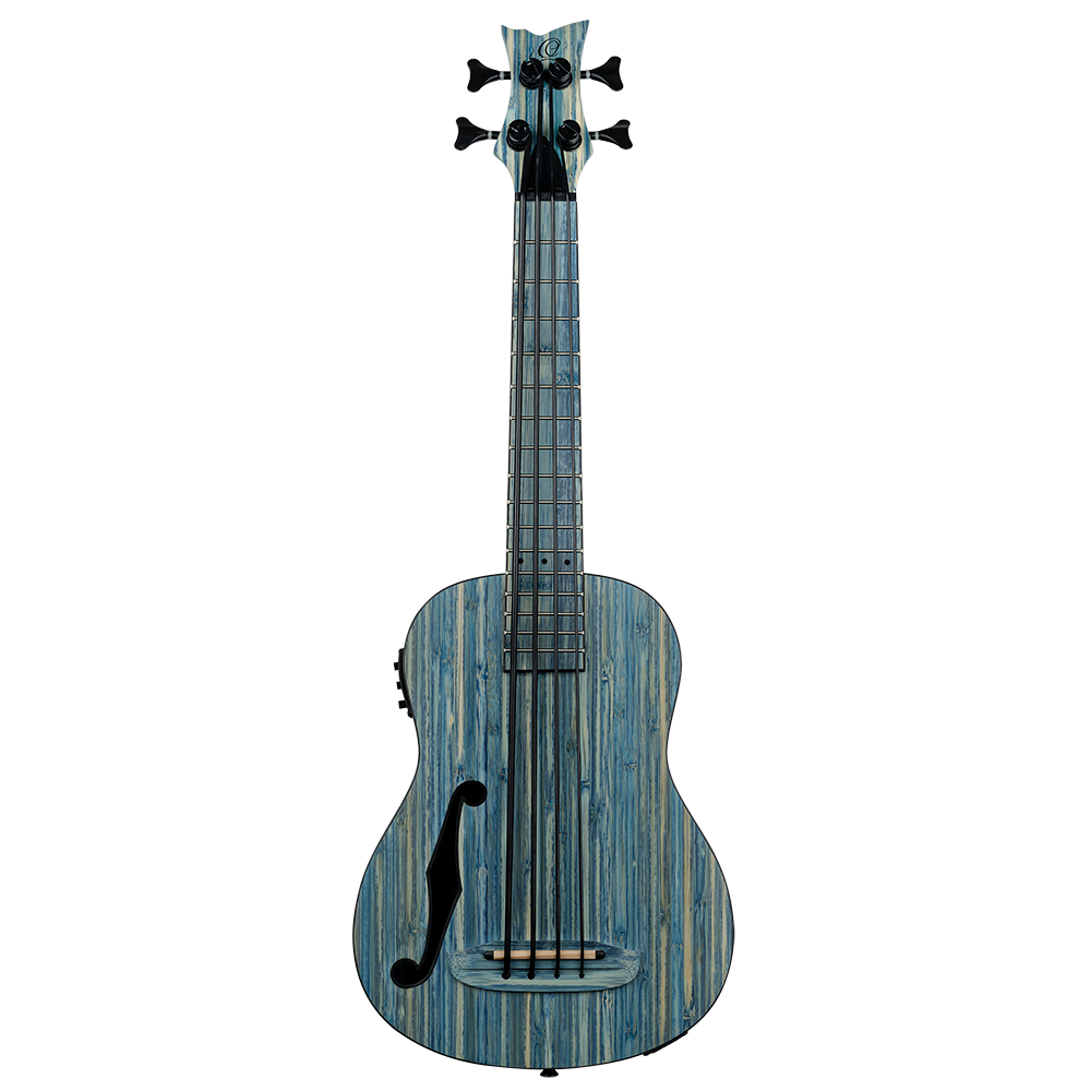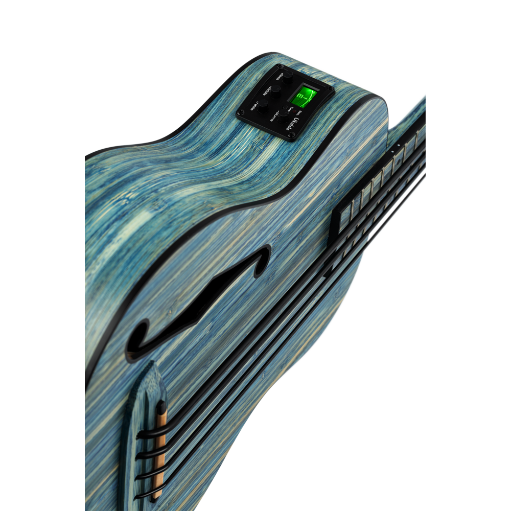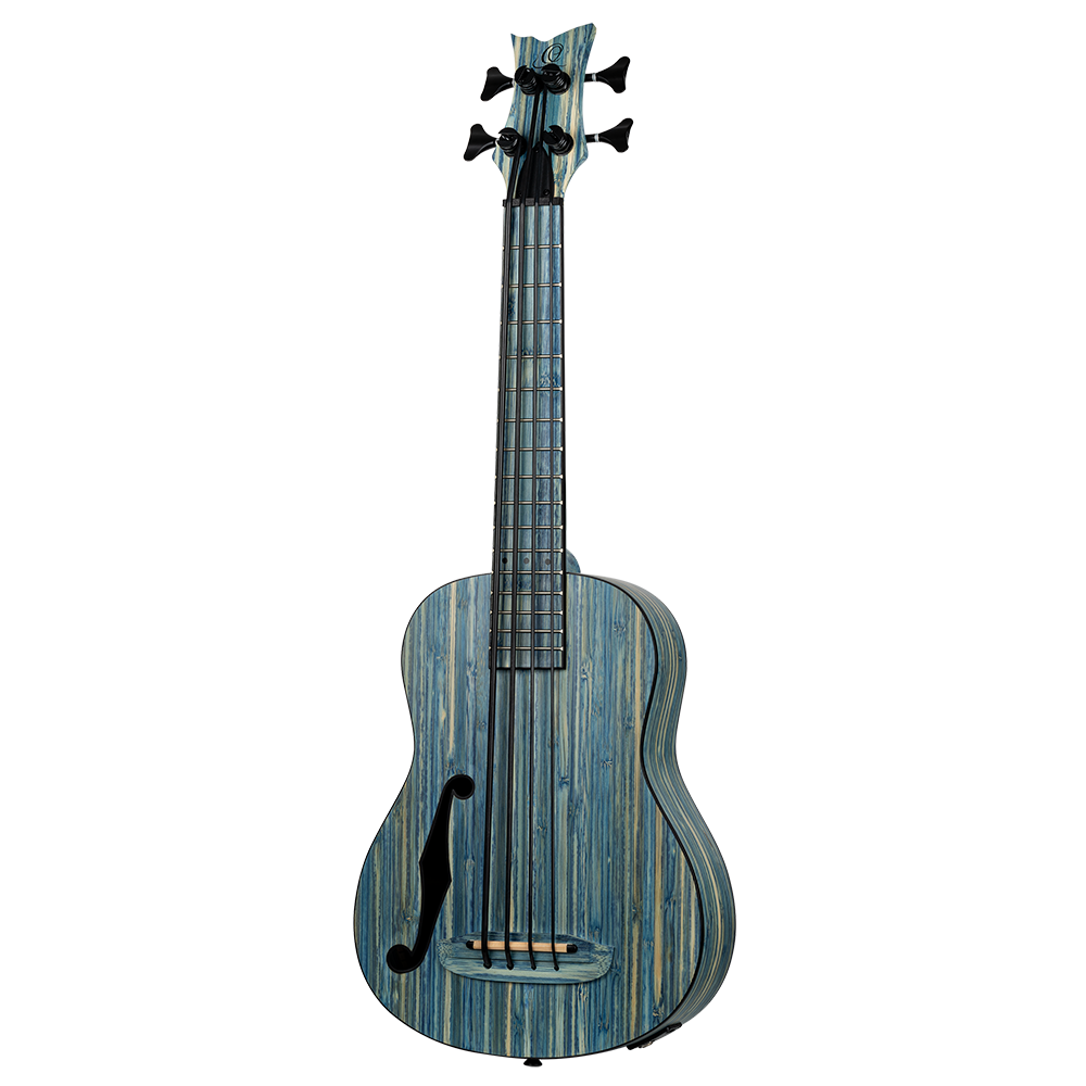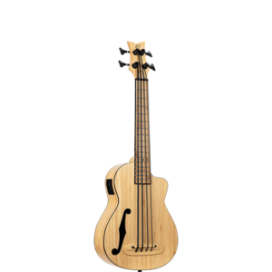 Each of the Bamboo series instruments is made of natural, solid bamboo. You can choose between soprano, concert, and tenor ukulele or uke bass. These ukuleles feature a MagusUke Preamp, a cutaway, and black Graph Tech Ratio tuners. The uke bass comes with an f-hole and beautiful black hardware. All of these instruments are available in either a ‘natural or ’jean stone washed‘ finish.