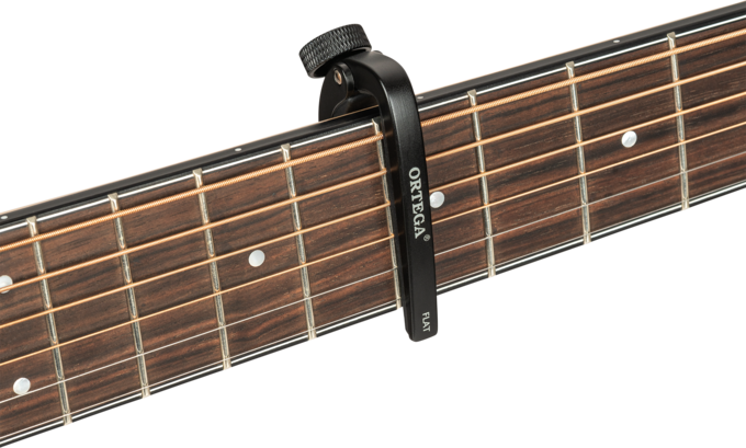 No buzzing, no detuning. The ultra-light, compact Ortega Capo Pro has a slim design that stays out of the way while you play. The precision screw-knob allows for fine tension adjustment, ensuring accurate intonation and eliminating fret buzz. Double-sided silicone pads provide a secure grip and long-lasting protection. It is suitable for fretboards up to a nut width of 52 mm.